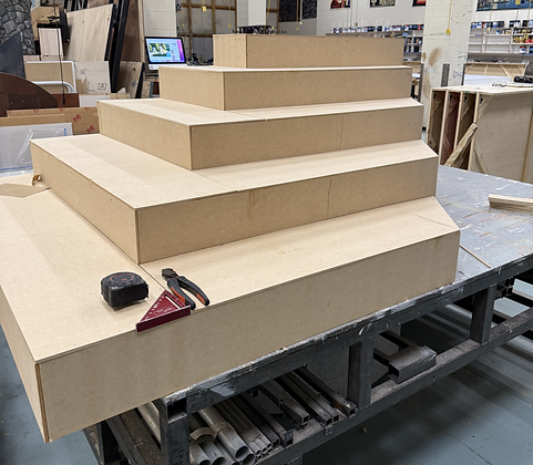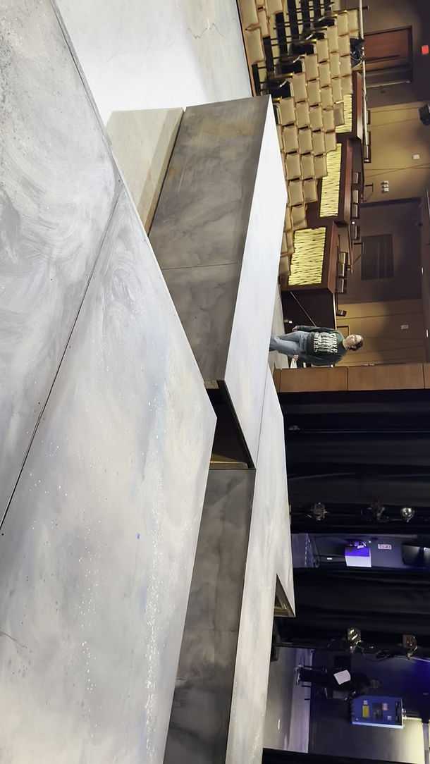 As the assistant technical director, I was mainly focused on learning the ropes of technical directing; from planning a load to drafting plates for the shop. I drafted two units for this production: the flown-in flats upstage and the stage left platform. This was only my second time ever using AutoCAD for drafting so I was still learning some of the basics. Once the head TD approved all the plates, I moved into the scene shop where I led a few build projects ensuring everything was constructed according to the plates we had drafted. Once the permanent set had been constructed I shifted my attention to planning and designing a hand crank that would be used to move one of the platforms up and down the stage. Then once the company had moved in, I trained the crew on how to use the hand crank safely and responsibly.